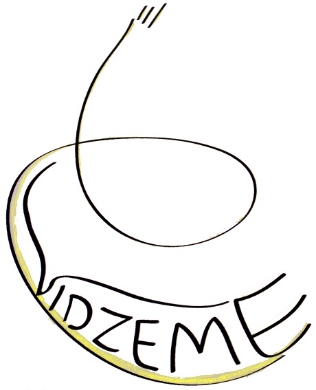 Centrā vārds Vidzeme. Pirms tā aplis ar līkumotu ceļu pa vidu un galā sauli. Zem vārda “Vidzeme” sauklis - ceļš ved augšup.