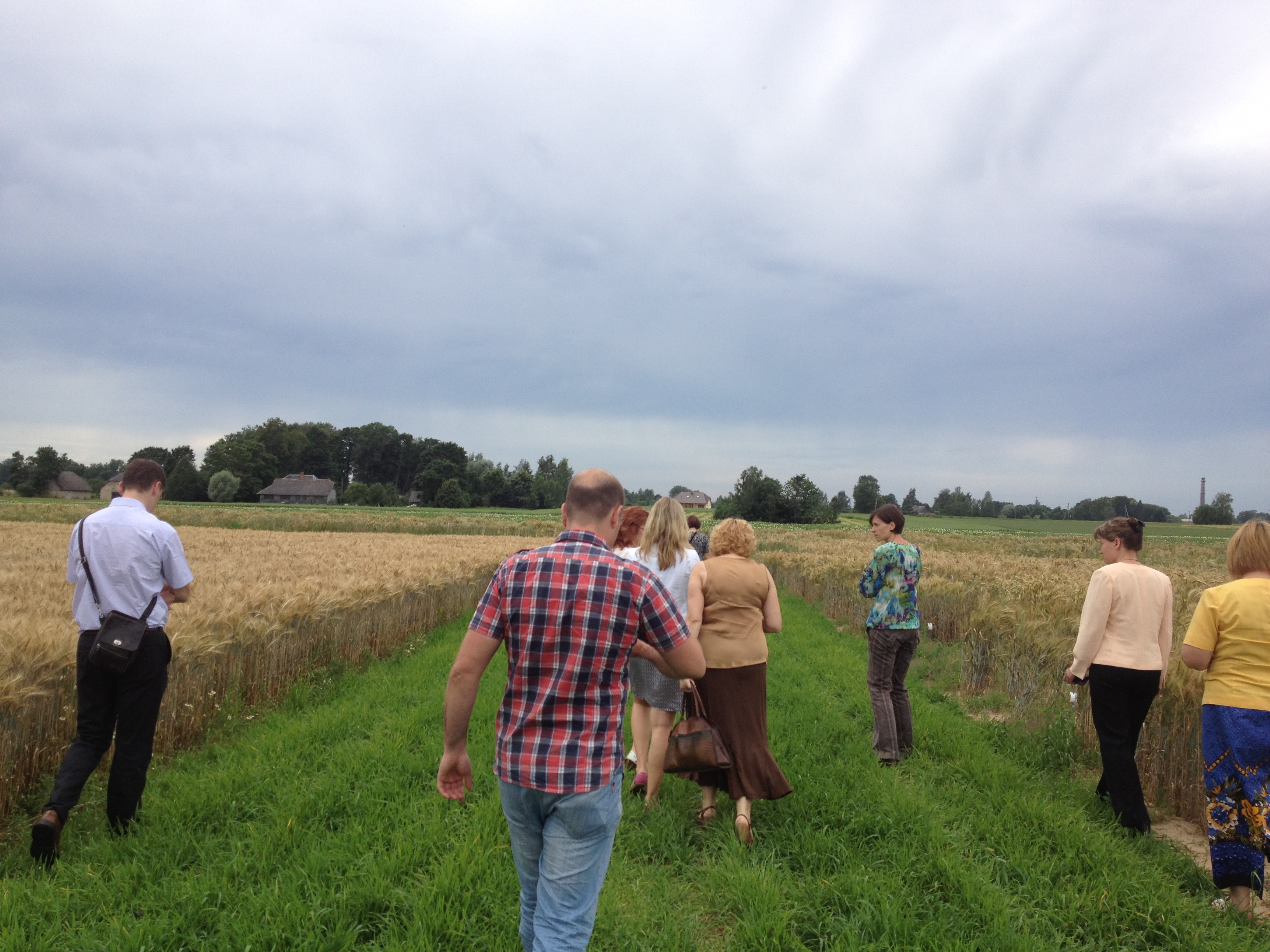 Tikšanās dalībnieki apskata Valsts Priekuļu laukaugu selekcijas institūta selekcijas laukus